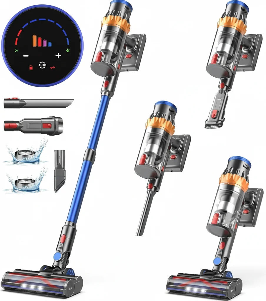 ASPIRAZIONE SUPER POTENTE DA 55 KPa, Potente motore brushless da 800 W. Rimuove polvere, macchie, peli, lanugine da tappeti, angoli e ogni area difficile da raggiungere.